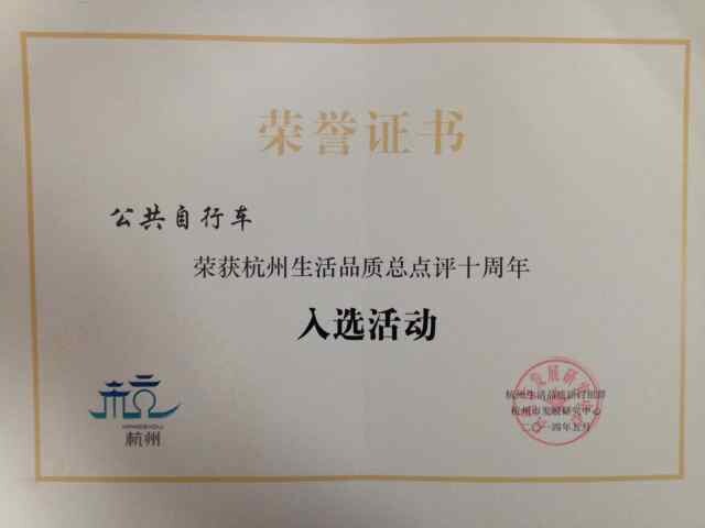 我司的“公共自行车”荣获杭州生活品质总点评十周年入选活动奖。作为全国率先推出免费单车系统的杭城公共自行车,实行“网络布点,通存通取”,提供免费租车服务,目前共有7.8万辆公共自行车,覆盖八城区,日均租用量约28.28万人次。通过与地铁、水上巴士、公交汽电车、出租车等系统的连接,杭州公共自行车解决了交通出行最后一公里问题,是城市低碳生活、便利生活完美合一的生动案例。2013年9月,英国广播公司(BBC)旅游频道选出了全球8个提供最棒公共自行车服务的城市,杭州众望所归名列榜首。评委会点评该系统的初衷是为了解决公共交通的“最后一公里”问题。现在它已经神奇地成为交通、生态、健身功能三位一体的综合系统。杭州生活品质总点评活动,既是对杭州城市建设和社会发展成果的总结、提炼,也是对杭州城市品牌和生活品质理念的宣传、传播。