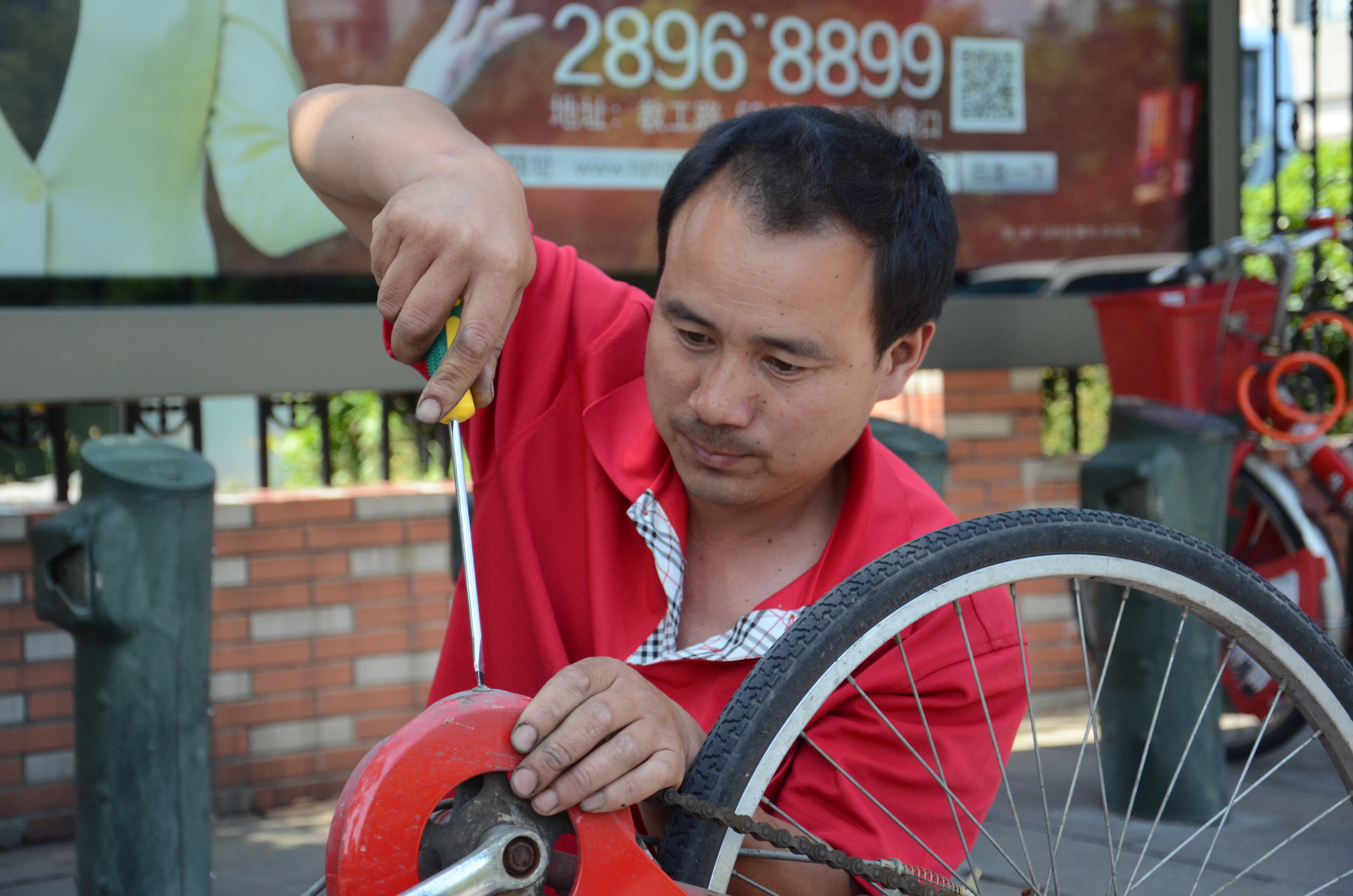 作为维修组长,2012年4月起的每月第一个周日,他都会和全国劳模孔胜东一起义务为群众修理自行车,至今已累计修复400余辆。日常生活中,他不仅坚持学习邓小平理论、“三个代表”重要思想和科学发展观,同时勤于思考、严格要求自己,努力在公交车与自行车两者间寻找维修方面的共通之处,多学习、多钻研,大到车架、中轴,小到螺丝、螺帽,每一部件都仔细研究,及时了解并掌握公共自行车维修作业的流程、规范,提高维修作业水平。在先后负责下城区红会医院、三塘小区、公交总公司片区车辆巡检工作期间,他一丝不苟地执行维修操作流程,及时排查和修复故障车辆,潜移默化地影响了身边人,团队力量得以凝聚。本着“勤恳做事、老实做人”的原则,他认真履行公司要求的“一站式”服务,坚守岗位、竭力为顾客提供优质服务。
