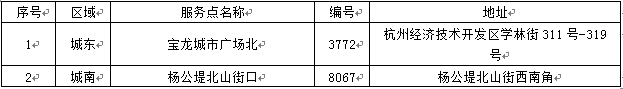 为进一步方便广大市民出行,优化公共自行车服务点网络,公司于16日新增宝龙城市广场北等2处服务点投入运营,欢迎广大市民前往租还车,具体点位如下: