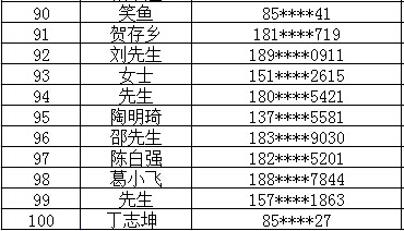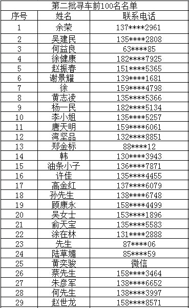 寻车榜前100名名单: