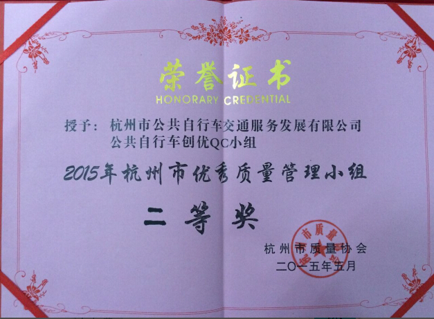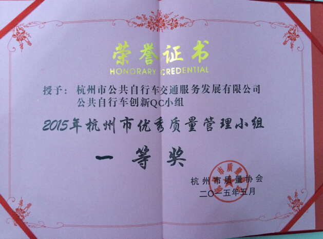 此次,公司派出了年轻、活力又专业的工作小组参赛,经过一系列的选拔角逐,公共自行车创新QC小组的“闸机式公共自行车租还点开发应用”课题和公共自行车创优QC小组的“改进公共自行车维修模式-提高车辆完好率”课题得到了评委老师、各与会代表的一致好评和认可,并分别取得了“2015年杭州市优秀质量管理小组一等奖”和“2015年杭州市优秀质量管理小组二等奖”的优异成绩。