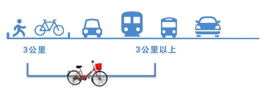 在公共自行车模式推出的实践过程中,存在一个有意思的现象:“三公里”魔咒。即是人们在三公里以内,更多人会选择骑车出行。而超过三公里后,人们因体力消耗太大,会更倾向于选择私家车、公共汽车或其他交通工具。显然,这和自行车克服空间距离的生态位和骑行者的体力有关。有数据表明,传统自行车的活动半径一般不超过五公里,如果扩大活动范围,除20至30岁青壮年男性外,其他人群很难做到。