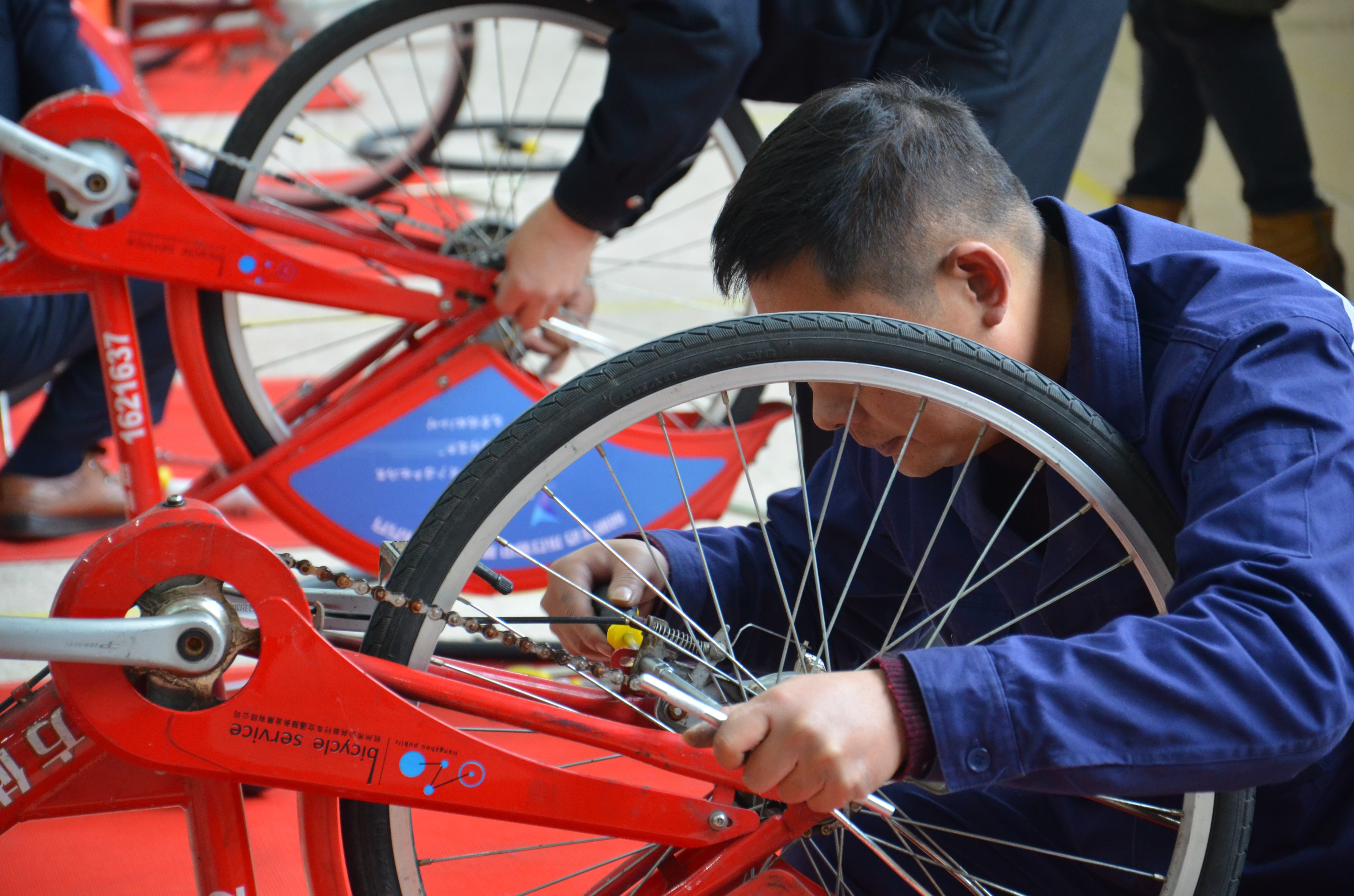 每一年,杭州公共自行车公司都会举行一场技术比武,来检验一年来维修队伍技术水平的提升,并为来年维修工作的开展进行练兵。今年,除了传统杭州公共自行车公司五个维修班组,还特别邀请了萧山、余杭、富阳、千岛湖的维修团队,在进行技术比武的同时,也对日常维修经验、心得进行了交流分享,使得杭州各区县市公共自行车能更紧密地联系在一起。