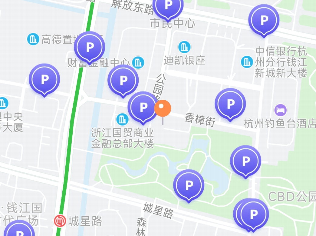 市民游客可以通过手机上的叮嗒出行APP(微信、支付宝小程序)查看杭城所有服务点。叮嗒出行上代表服务点的气泡内含“P”标识的即为小红车电子桩服务点(部分测试点位除外),点击“P”标识时,可以显示可借电子锁小红车的数量。