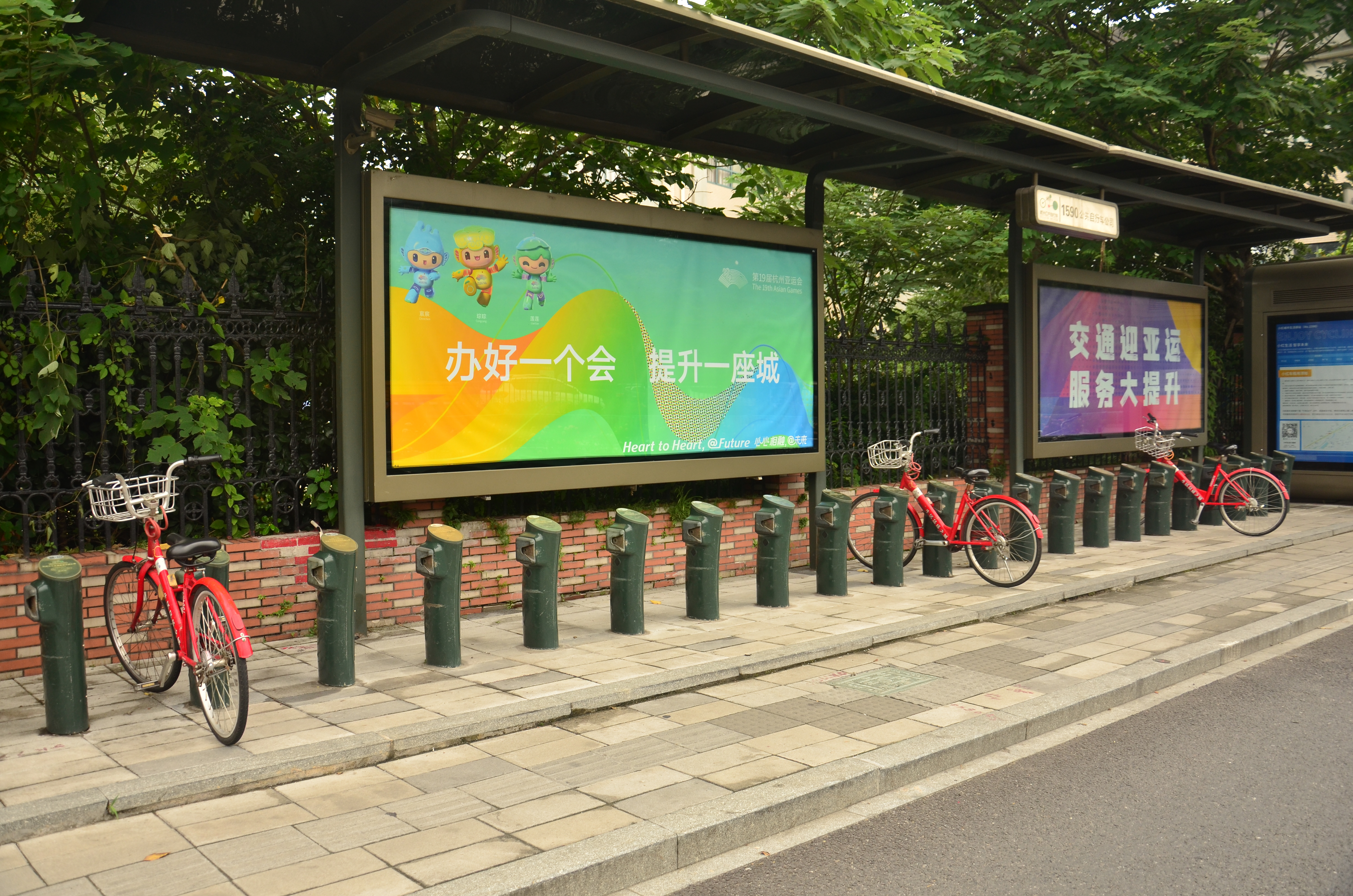 此外还有部分小红车服务站点张贴的亚运海报、小红车服务亭穿上“亚运新装”等等,小红车与亚运之间的联系越来越密切,市民游客与亚运的距离也越来越近。