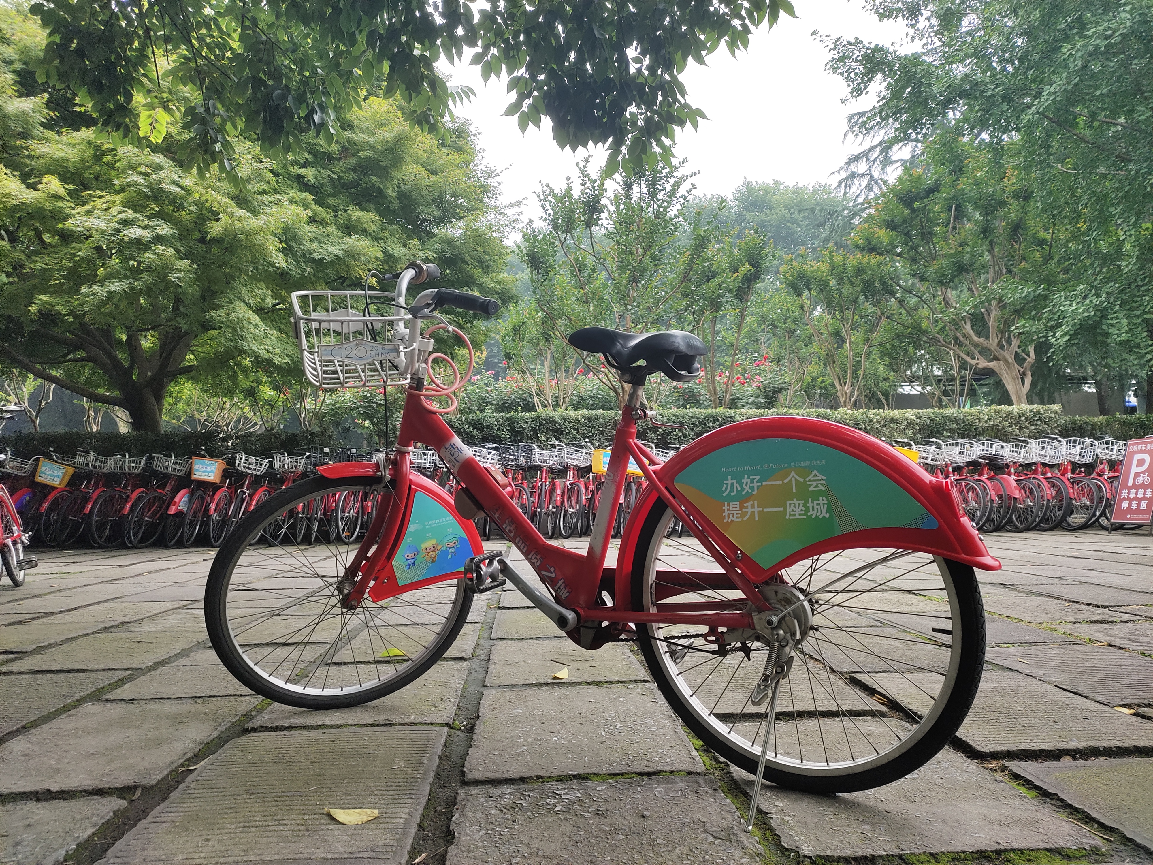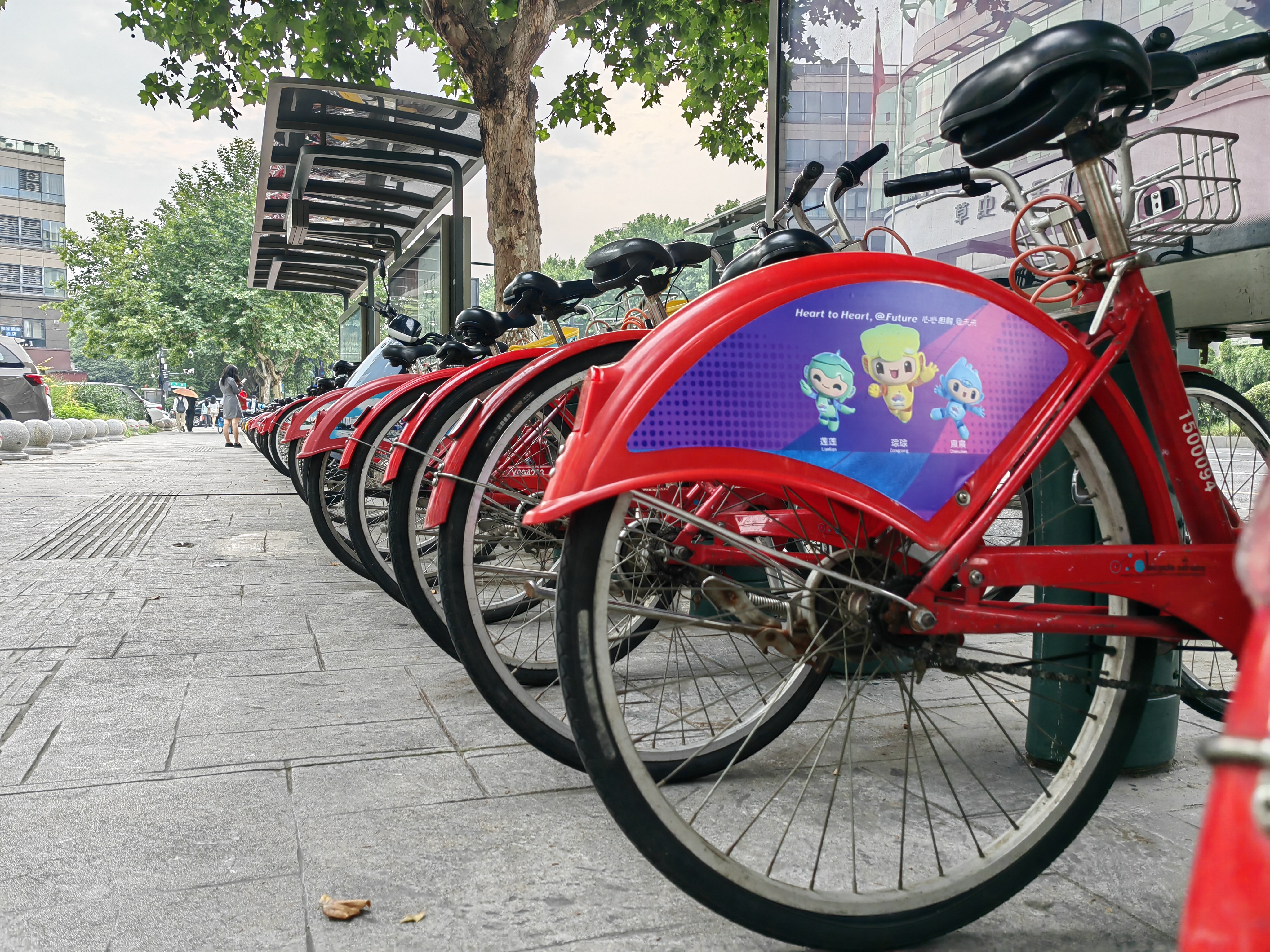 不知道最近大家在租用小红车时,有没有发现这种张贴了亚运吉祥物贴纸的小红车。