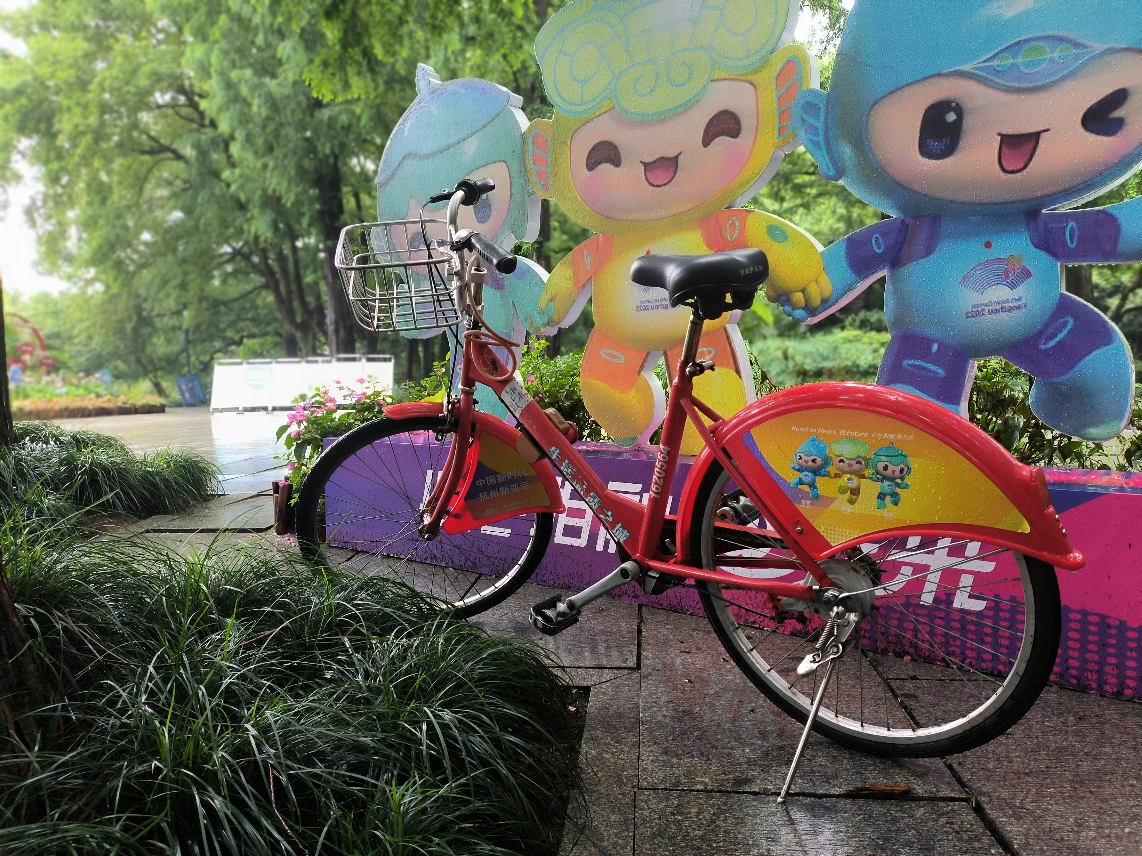 随着亚运的脚步渐进,在今年6月份,小红车悄悄上线了全新亚运元素的小红车。部分带有连体广告泥板的小红车开始换上新装,原有的广告贴纸被替换成了亚运吉祥物琮琮、莲莲、宸宸,小红车的整体形象气质立马来了个大变样,看起来十分精神、舒适。